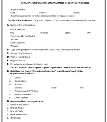 Application Form For Empanelment Of Service Provider