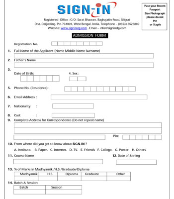 SIGN-IN Training Admission Form